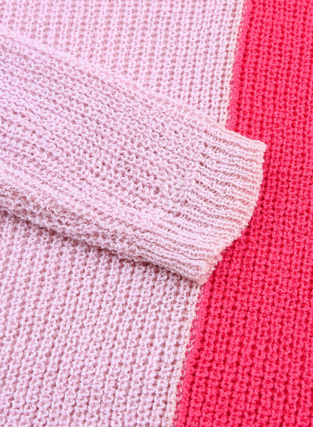 - This chic sweater has an eye-catching colorblock design in trendy hues