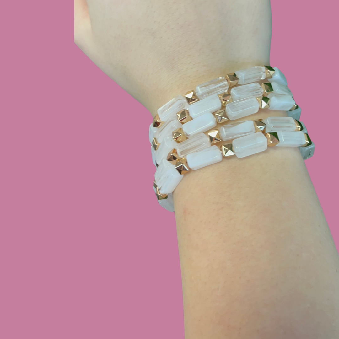 Cloudy White and Gold Beaded Bracelet Set